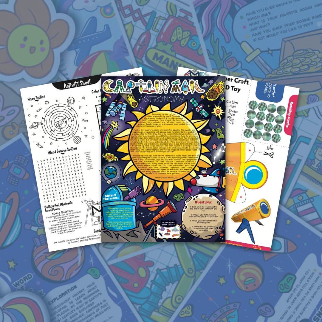 Zoom off on an interstellar adventure with our free astronomy-themed activity sheets for kids! This pack takes young astronauts on a voyage through the cosmos, exploring the ancient science of astronomy, from the earliest observations to the cutting-edge space exploration of today. Learn about the planets, stars and galaxies, as well as the tools astronomers use to unravel the universe's mysteries.